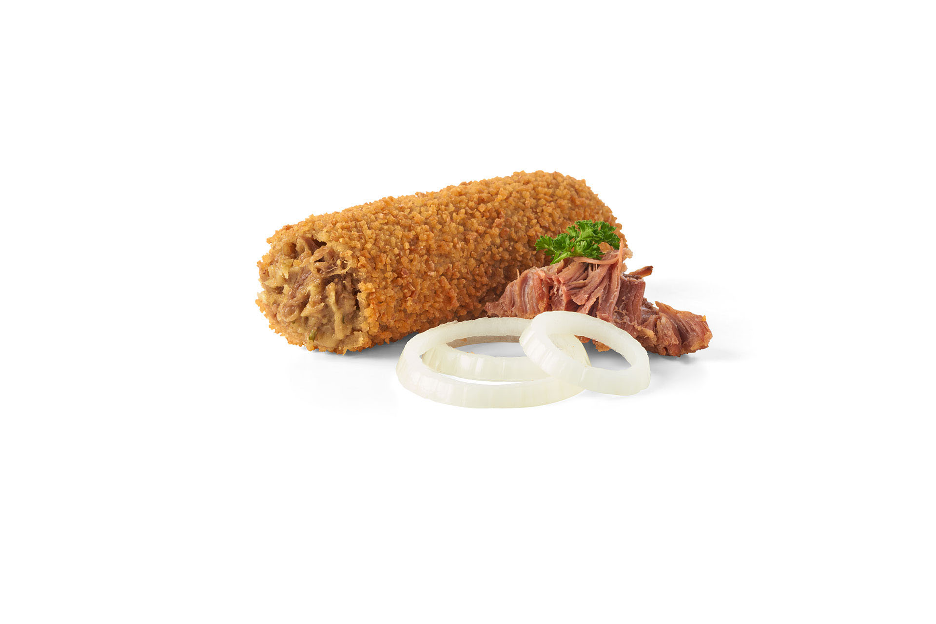 Runderbouillon (water, rundvlees), rundvlees 25%, paneermeel (TARWE, GLUTEN, GERST), TARWEbloem (GLUTEN), margarine (plantaardige vetten: palm, kokos, plantaardige olie: raapzaad, zout, emulgator (E471), zuurteregelaar: melkzuur (MELK, LACTOSE)), doorhaalmiddel (water, SOJAbloem, TARWEzetmeel (GLUTEN), TARWEbloem (GLUTEN) kipEIwit (EI), geleermiddel (E407a), stabilisatoren (E466, E508), verdikkingsmiddel (E415, E412)), ui, rundergelatine, TARWEzetmeel (GLUTEN), plantaardige EIwithydrolysaat (SOJAhydrolysaat, plantaardige olie: zonnebloem), emulgator (E464) vleespremix: (zout, glucosestroop, smaakversterker (E621), aroma’s (smaakversterkers (E621, E627, E631), (TARWE, GLUTEN, SOJA), plantaardige olie: raapzaad, kleurstof (E150c), nootmuskaat), zout, aroma (zout, smaakversterker (E621, E631), gedroogde glucosesiroop, suiker), kruiden en specerijen (specerijen, zout, groenten (SELDERIJ), aroma).