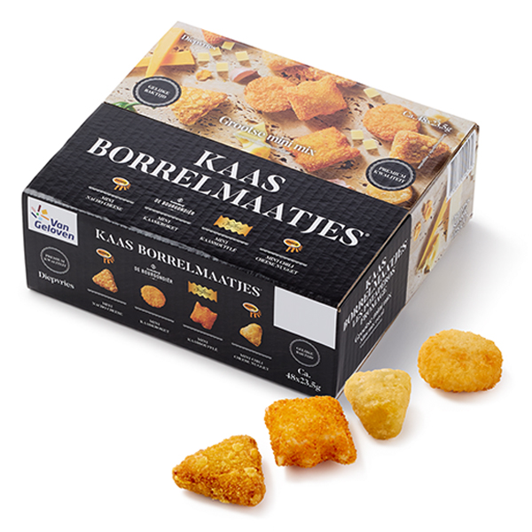 Mini kaaskroket: Water, bloem (bevat tarwe), parmenzaanse kaas 15% (melk, zout, zuursel, stremsel), Emmentaler kaas 11% (melk, zout, zuursel, microbieel stremsel), zetmeel (bevat tarwe), gemodificeerd zetmeel, zout, verdikkingsmiddel: E464, natuurlijk aroma, gist, emulgatoren: E451, E339 en E450, specerijen, stabilisatoren: guarpitmeel en xanthaangom, raapzaadolie.