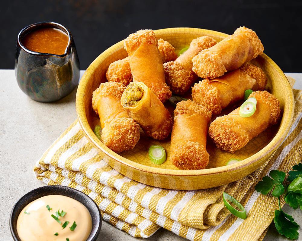 {tarwe}bloem, kip (17%), water, KIPPENEI, paneer (7,5%) ({tarwe}bloem, water, palmvet, gist, zout, emulgator: E471, kleurstof (E160c, E100)), sperzieboon, aardappel, ui, prei, geraffineerde koolzaadolie, kippenbouillon, koriander, garam masala kruidenmix (bevat MOSTERD), tomatenpuree, suiker, lente ui, zout, knoflook, maïsbloem, gember, aroma (SOJA), rijsmiddel (E450, rijsmiddel (E500)), kleurstof (E160b (ii)), zuurteregelaar: E336, verdikkingsmiddel: E412